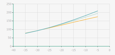 | 蒸發溫度 | 制冷量+/-5% | 能耗+/-5% | 現在能效+/-5% | 氣體流速+/-5% | 能效+/-7% | ||||