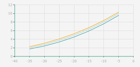 | 蒸發溫度 | 制冷量+/-5% | 能耗+/-5% | 現在能效+/-5% | 氣體流速+/-5% | 能效+/-7% | ||||